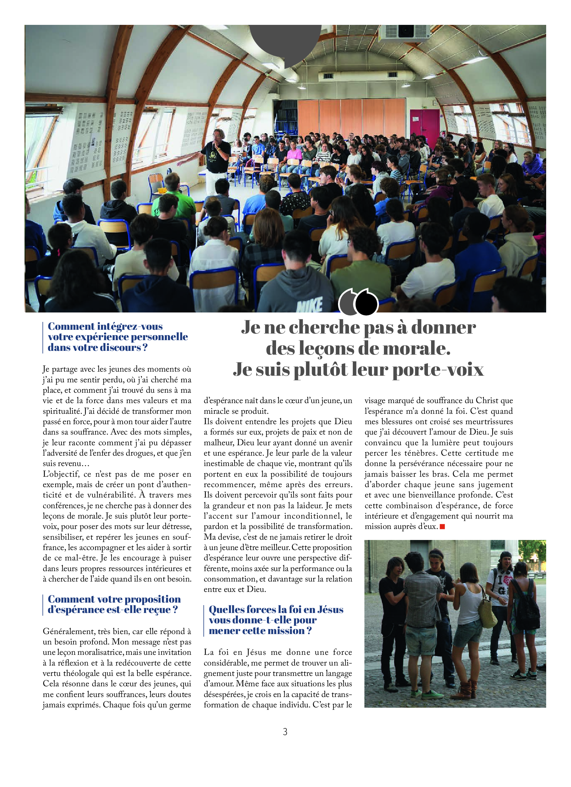 traversées, me permettent de me donner à fond dans une mission de prévention auprès des jeunes. J’aime ce que je fais. Car comme le disait Don Bosco : « les jeunes sont la partie la